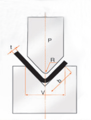 | V | 下模槽宽 | Bottom die groove width | mm | 下模的开口尺寸(通常取板材厚度的8-10倍,以实际模具为准) |