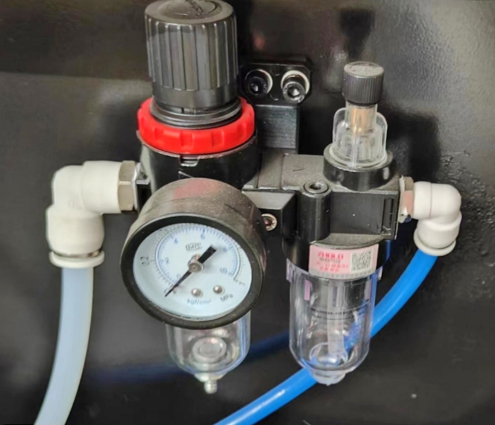 机器配有分水器,可以过滤辅助气体中的杂质,确保辅助气体的纯度,保护激光头。因为不纯气体会随着气管进入激光头,从而污染激光头。