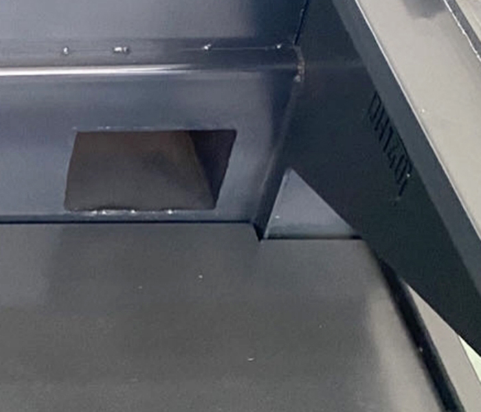 ANTISHICNC总结了市面上很多公司受料口的设计,发现受料口的板材厚度必须超过 3 毫米,以防止切割后较厚的金属掉落,造成受料口的板材弯曲。变形,从而影响切割精度和床身稳定性,市面上其他公司提供的切割机受料口金属板厚度为 2.5mm,ANTISHCNC的设备钣金厚度为 4mm, 最大限度地提高金属板的稳定性