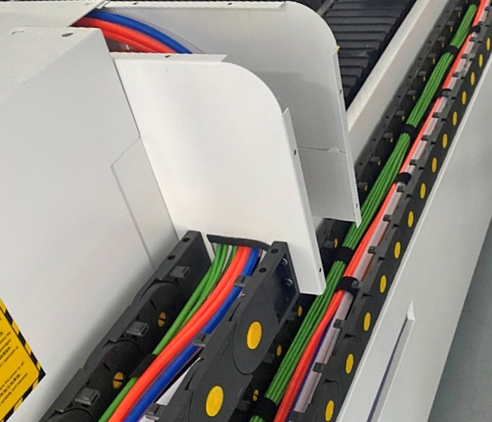 ANTISHICNC使用防尘和防火的坦克链,以确保灰尘和杂质进入电线和气管的坦克链,从而在激光头快速移动过程中磨损线路和气管。在机器出厂前,我们的技术人员会将坦克链中的所有线路都理顺。
