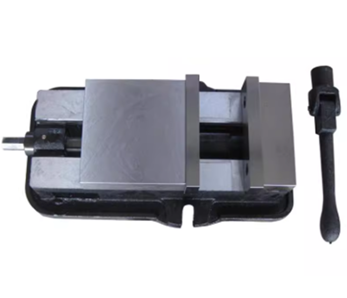 6寸平口钳是一款专为铣床加工设计的高精度夹具,钳口宽度为6英寸(约150mm),可稳定夹持中小型工件,适用于铣削、钻孔、攻丝等多种加工工序。该平口钳采用优质铸铁或合金钢制造,经精密研磨处理,确保钳口平行度和垂直度误差小于0.02mm,提供可靠的定位精度。其活动钳口设计配合高精度丝杠传动,夹紧力强且操作省力,并配备淬火硬化钳口片,耐磨防滑,有效保护工件表面。底座带有标准T型槽,可快速安装于炮塔铣床工作台,支持360°旋转调节,满足多角度加工需求,是提高加工效率和精度的理想辅助工具。